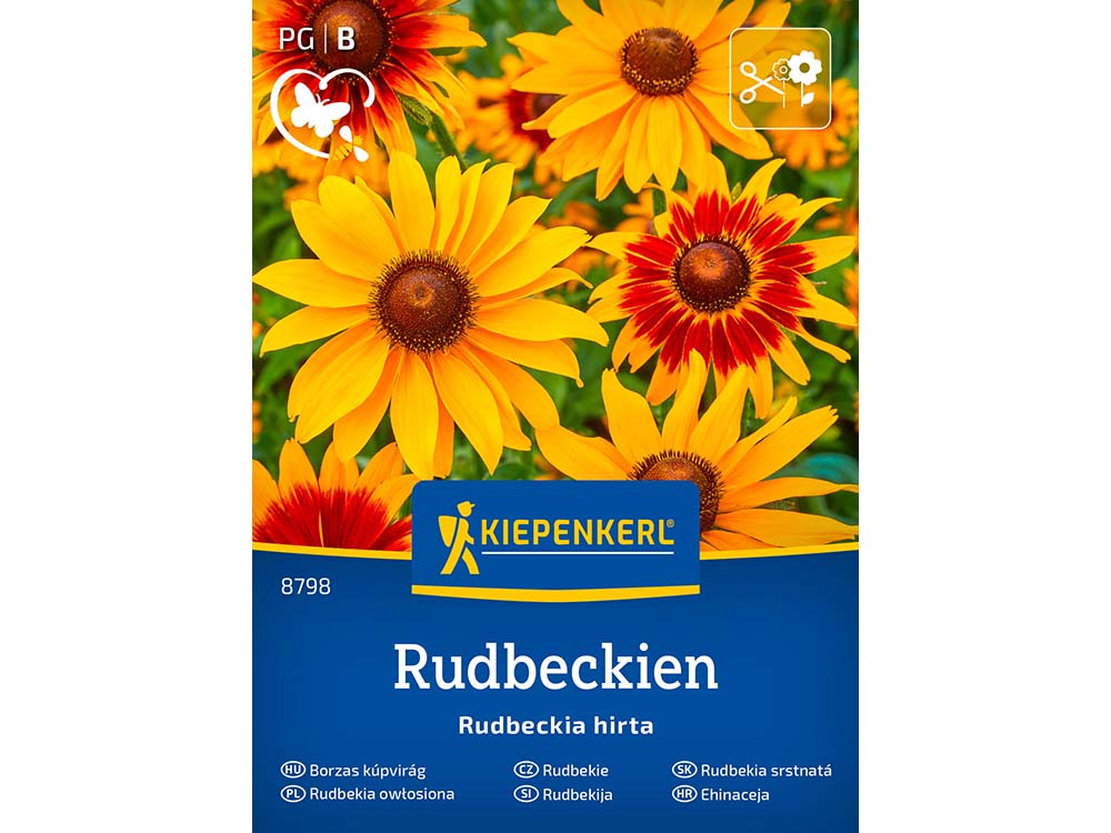 A 70 cm magas borzas kúpvirág színkeverék (Rubeckia hirta) kedvelt, igénytelen, eélyes növekedésű, egynyári dísznövény. Tőlevelei nagyok, lándzsásak, szára a levelei érdesen szőrösek. A sárga, narancssárga, vöröses virágok szirmain barnás rajzolatúak, a virág közepe is barna, a virágok átmérője 10–12 cm. Remek méhlegelő. A virágok vázaélete 7-14 nap. Júliustól szeptemberig virágzik.